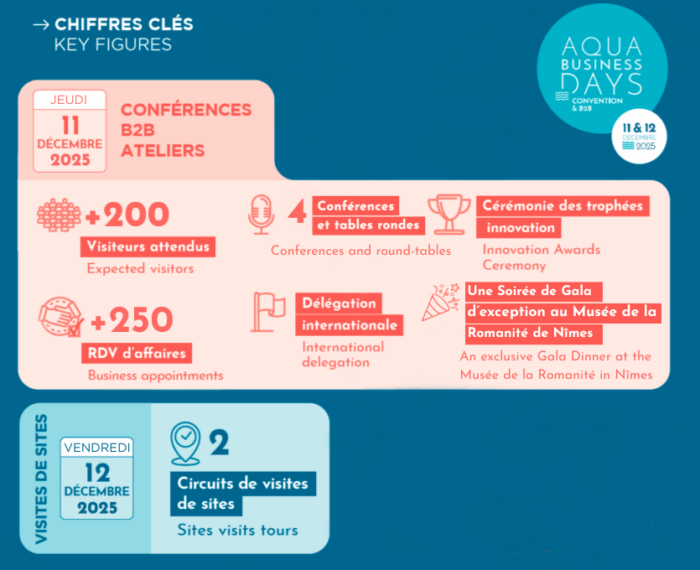 Aqua Business Days est une convention d’affaires rassemblant des acteurs économiques et académiques. Cet évènement vise le développement de réponses et solutions concrètes basées sur les compétences métiers des acteurs.
