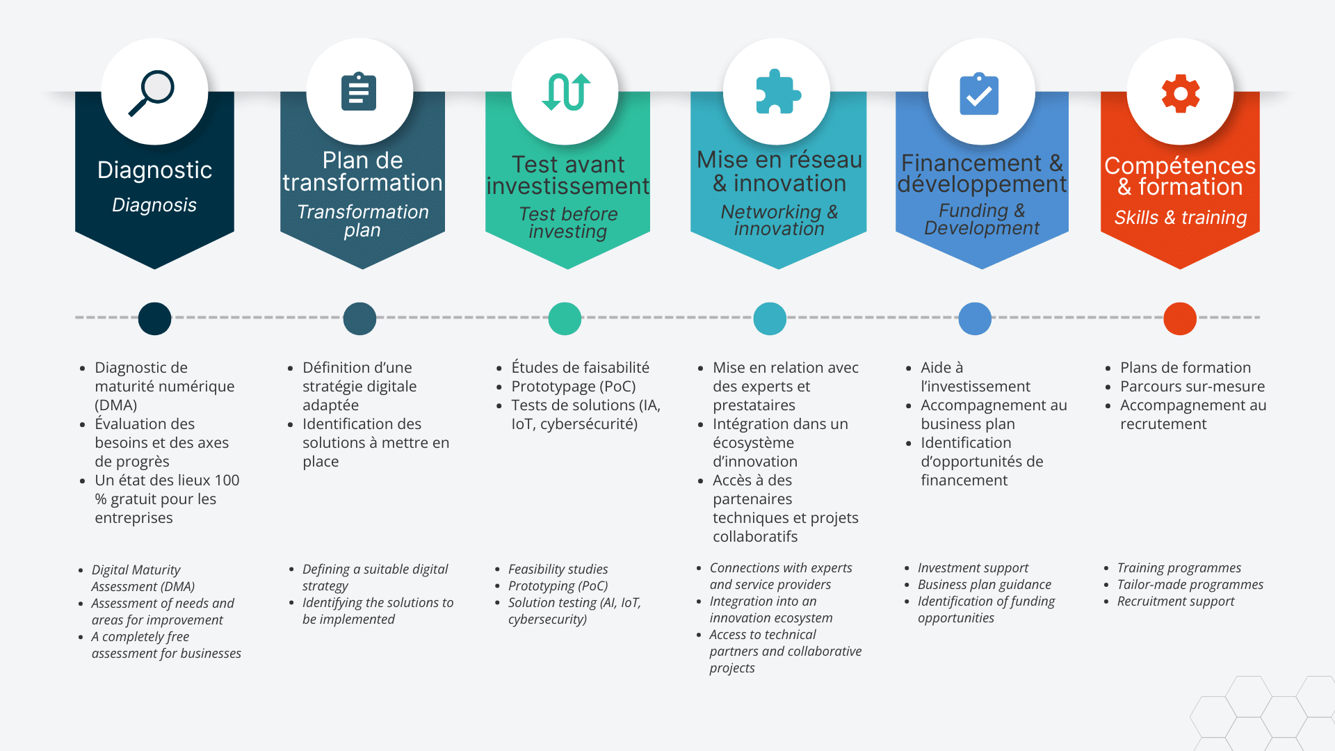 Designed as a one-stop shop, it enables businesses to identify their needs, test solutions and develop their digital strategy.